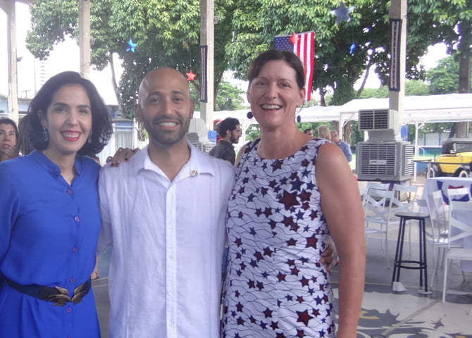 Depois a hostess convidou o vice-governador Raul Henry, para em nome do Governo do Estado fazer uma saudação. E finalmente foi a vez do Cônsul Geral, John Barrett, agradecer e explicar o sentido para os norte-americanos do Independence Day. Brincou com o cônsul do Japão Jiru Maruhashi porque sua seleção foi eliminada. Também desejou boa sorte para nossa seleção que hoje enfrenta a Bélgica.