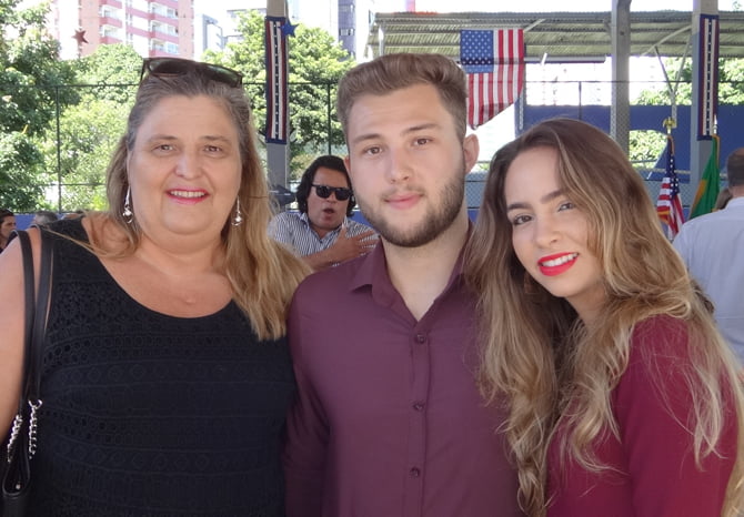 A cônsul alemã Martina Bock de Oliveira, o filho Daniel e sua namorada Clara Macedo (Foto: Fernando Machado)