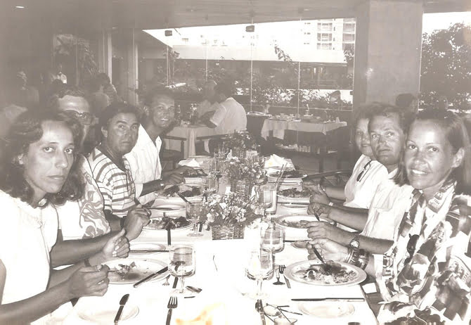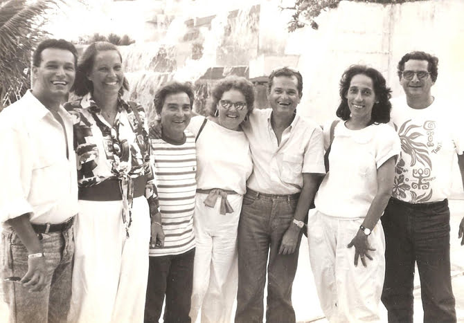 Orismar, Ana Maria, Dalci José, Edna, Fernando, Vera e Edgard no parque aquático do Mar Hotel em 1992 (Foto: Arquivo)