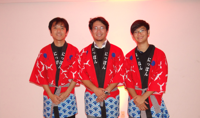 Victor Arata, Anderson e Eric Makyama prontos para executarem a Taiko (Foto: Fernando Machado)