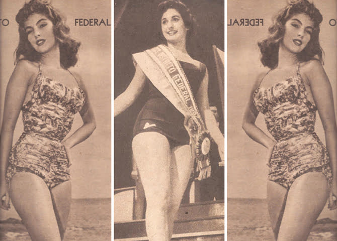 Maria de Lourdes Monteiro em duas poses: de maiô e close (Fotos: O Cruzeiro)