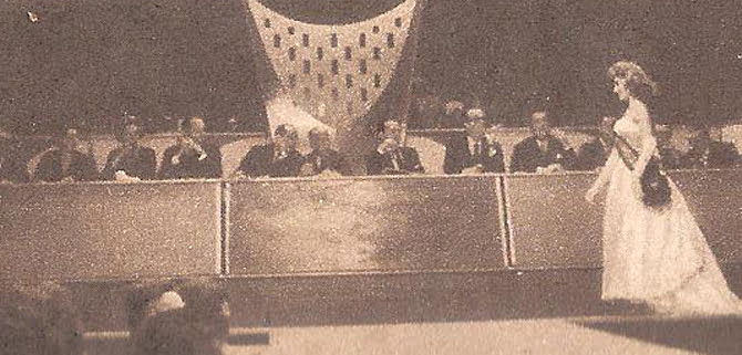 Maria de Lourdes Monteiro desfilando para o juri do Miss Distrito Federal, no Maracanãzinho (Foto: O Cruzeiro)