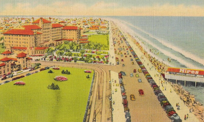 O hotel onde as misses se hospedaram na Avenida beira mar de Galveston (Cartão Postal)