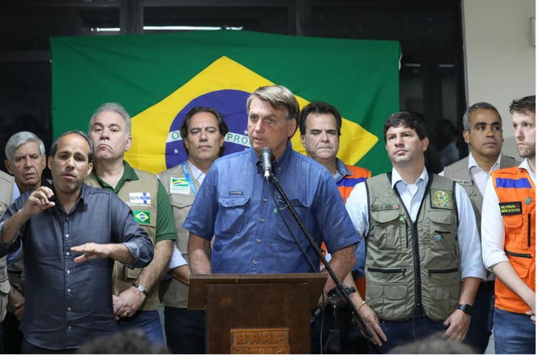 Após o sobrevoo, o Presidente Jair Bolsonaro concedeu uma entrevista coletiva, acompanhado por ministros, e afirmou que o Governo Federal está em alerta para atender a população em qualquer situação e detalhou que já no sábado as Forças Armadas começaram a atuar no resgate das vítimas. Em seguida, os ministérios do Desenvolvimento Regional, da Cidadania, da Saúde, a Polícia Rodoviária Federal, entre outros órgãos, iniciaram as providências de assistência.