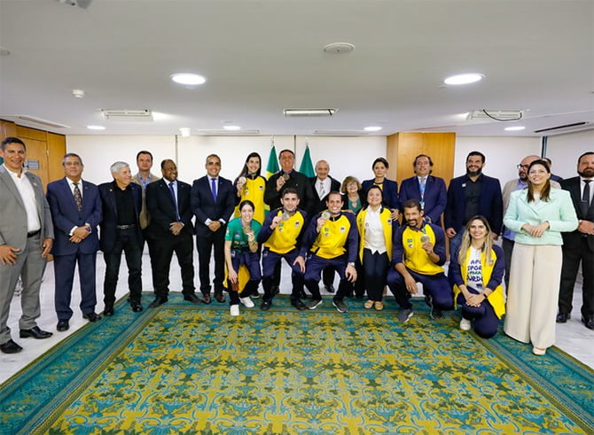 O Presidente da República, Jair Bolsonaro, a primeira-dama, Michelle Bolsonaro, e o ministro da Cidadania, Ronaldo Bento, receberam segunda-feira atletas brasileiros que conquistaram medalhas nas Surdolimpíadas. O evento, realizado em Caxias do Sul (RS) entre os dias 1 e 15 de maio, reuniu mais de cinco mil atletas, de 77 países, e o Brasil registrou o maior número de conquistas de sua história. Foram seis medalhas, todas de bronze.