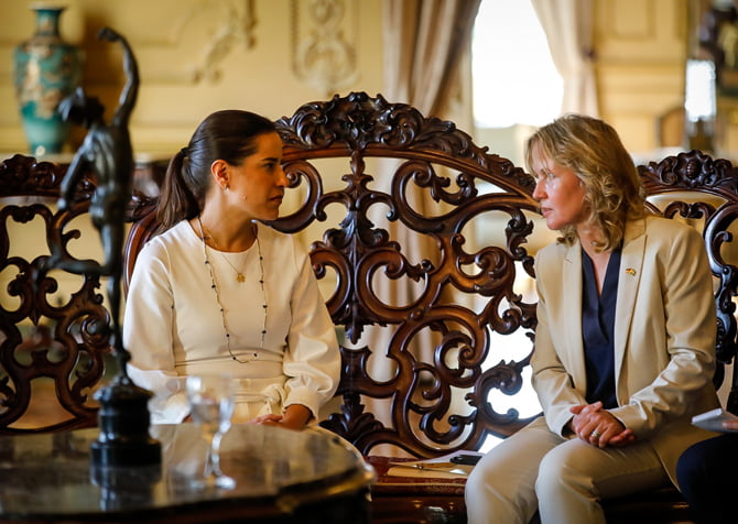 A governadora de Pernambuco Raquel Lyra recebeu, quarta-feira, a ministra do Meio Ambiente, Proteção da Natureza e Segurança Nuclear da Alemanha, Steffi Lemke. O encontro aconteceu no Palácio do Campo das Princesas, e teve como objetivo estreitar os laços de Pernambuco com o governo Alemão. Também participaram do encontro os secretários estaduais Fernando Holanda, Guilherme Cavalcan, Túlio Vilaça, Ana Luíza Ferreira e Mauricélia Vidal.