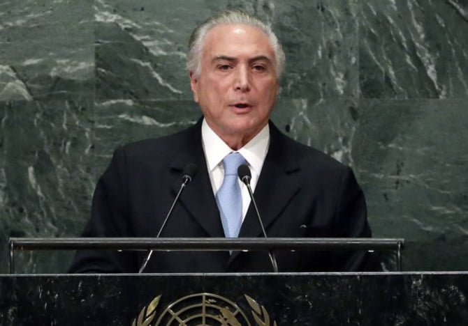 Michel Temer na sua fala na ONU, em Nova Iorque (Foto: AP)
