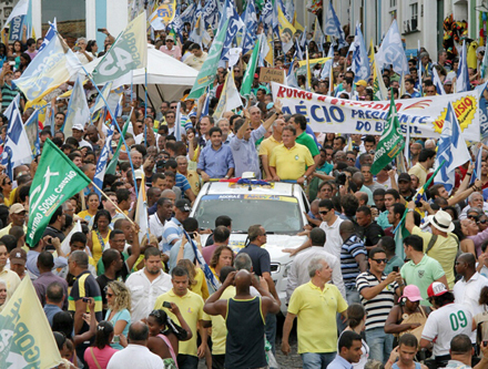 Depois da apoteótica vinda de Aécio Neves a Salvador, quando dezenas de milhares de pessoas lotaram o Largo do Pelourinho sexta-feira, engajadas no Muda Brasil, a campanha do candidato tucano à Presidência da República se intensifica pelo interior do estado. O prefeito ACM Neto e o ex-governador Paulo Souto estiveram ainda na noite de sexta-feira, em Alagoinhas, participando de evento, organizado pelo deputado federal eleito, Paulo Azi (DEM).
