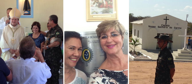 Na inauguração da capela Dom Magnus, Quice e o general Pafiadache, Claudia Moura e Gláucia Ananias, além da Capela (Fotos: Instagram)
