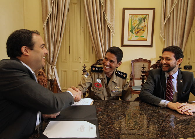 Governador Paulo Câmara, TC Câmara Junior e o secretario Antonio de Pádua (Foto: Helia Scheppa)