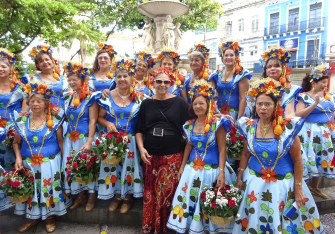 Carmen Alves e as pastoras do Bloco das Flores (Foto: Fernando Machado)