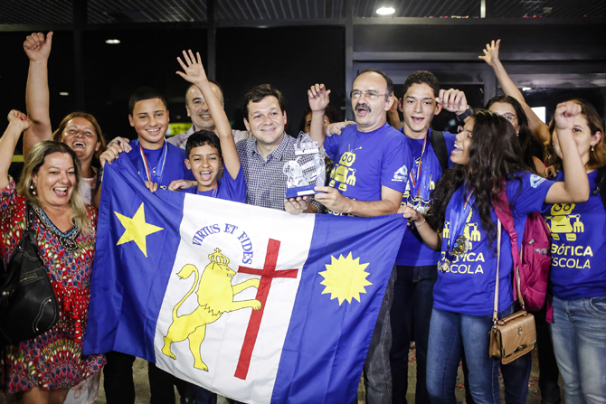 O ensino público recifense foi coroado com a grande vitória destes três heróis. Não podia ser de outra forma. Os estudantes da rede municipal de ensino do Recife que ganharam a Olimpíada Brasileira de Robótica chegaram ao Recife em clima de muita festa e emoção. Maryllia Willyane Félix, Emerson Almeida e Gabriel Loureiro, todos de 14 anos, alunos da Escola Municipal Rodolfo Aureliano, na Várzea, foram recepcionados no Aeroporto Internacional dos Guararapes, na tarde de ontem, com faixas, cartazes e muita música da banda Marcial da Escola Municipal Paulo VI.