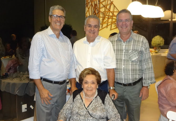 Dona Conceição com os filhos Frederico, Walter e João nos seus 90 anos (Foto: Fernando Machado)