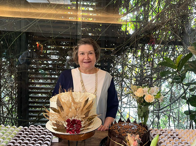 Foi um resgate de alegria. O bolo assinado por Jéssica Pires estava de fazer inveja a Apicius. Como fundo musical teve o piano de Lucio Azevedo e um show com Cibele do Cavaco. A danada canta muito e sapecou muito sem esquecer o frevo de Capiba, dando o toque de carnaval ao ambiente. As convidadas dançaram, no dancing improvisado, como se fosse à última vez de suas vidas. Os animadores de Petequinha Eventos, vestidos de sambistas deram um toque especial à animação.