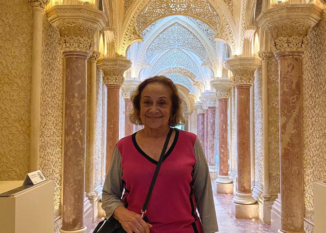 A senhora Maria Fernanda Nejaim em férias por Portugal (Foto: Face)