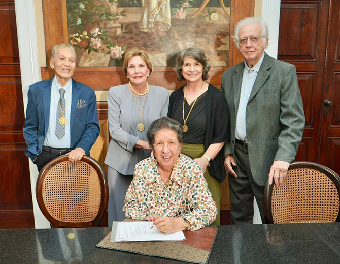 Margarida Cantarelli e atrás Lourival Holanda, Maria Lecticia Cavalcanti, Jô Mazzarolo e Ângelo Castyelo Branco (Foto: Divulgação)
