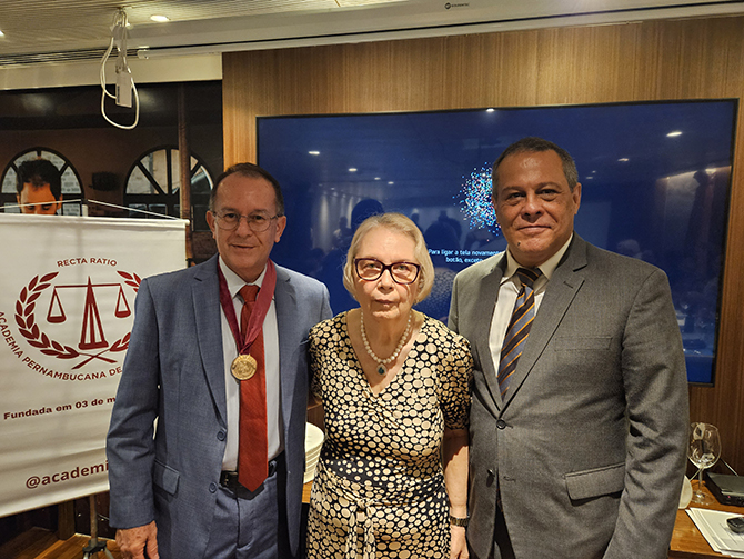 A presidente da Academia Pernambucana de Letras Jurídicas, Rosana Grinberg, esteve à frente ontem, do almoço de adesão, comemorando os 48 anos de fundação da entidade, restaurante Ruizito, no RioMar. Na ocasião tivemos uma palestra em homenagem ao jurista Torquato de Castro, primeiro presidente da Academia, proferida pelo professor Torquato de Castro Júnior, filho do jurista.