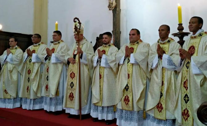 A Igreja Católica ganhou sete padres, segunda-feira, numa cerimônia recheada de emoções na Catedral Metropolitana, em Olinda. Cerca de duas mil pessoas prestigiaram a solenidade de ordenação presbiteral dos novos sacerdotes do Seminário Arquidiocesano Nossa Senhora da Graça, leia-se o padre João Bosco Costa Lima. A celebração foi presidida pelo Arcebispo da Arquidiocese de Olinda e Recife, dom Fernando Saburido.