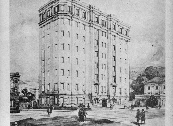 A maquete do Hotel Central publicada na Revista A Pilheria em 1937