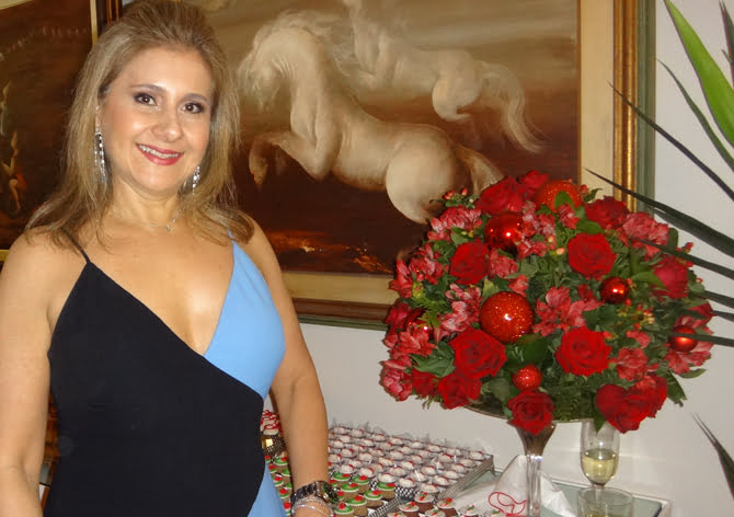 Na mesa da sala de jantar, estava coberta com uma toalha bem natalina e sobre ela repousava uma jardineira com rosas, bico de papagaio e celosia vermelhas. Do teto caia um lustre de cristal Saint Louis. A decoração foi de Dedeka e Gabriela Galvão, que colocou na mesinha da sala de espera uma fruteira de prata com orquídeas. Na sala de visita os convidados puderam desfrutar de uma ambientação de fazer inveja aos cenários das novelas de televisão. O fundo musical ficou por conta dos irmãos Henrique e Lena Benevides, voz e teclado.