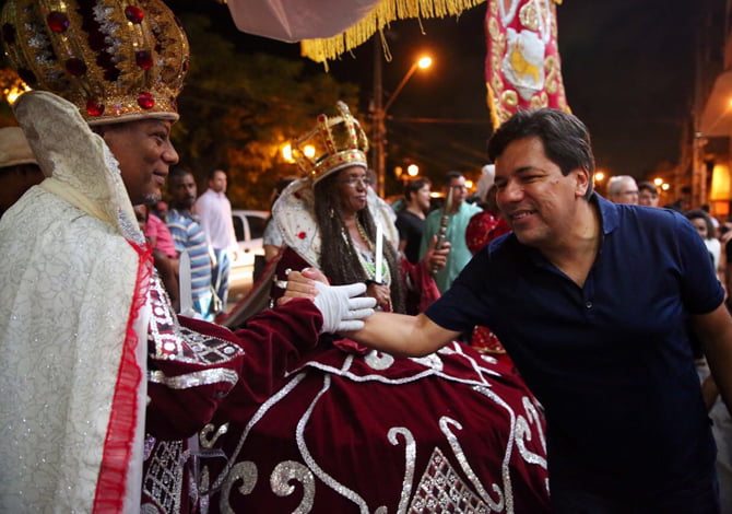 Mendonça Filho cumprimentado o rei do Maracatu (Foto: André Nery)