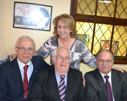 Em festa de cerimonialistas Rose Paes Barreto entre Francklin Santos, Marcilio Renaux e Silas da Costa e Silva (Foto: Cortesia)