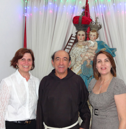 Jô Mazzarolo, Frei Francisco Barreto e Leila Queiroz diante de Nossa Senhora da Escada (Foto: Fernando Machado)