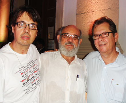 Na Missa dos 100 anos do Tricolor: Bruno Lyra, Elísio Moura e Luiz Manuel, neto do fundador do Santinha Luiz Gonzaga Barbalho (Foto: Cortesia)