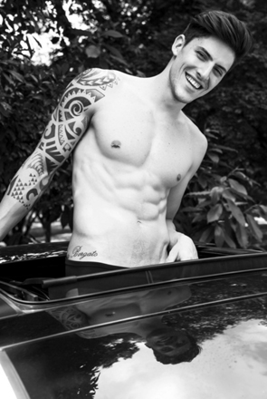 Danilo Borgato abriu a capota do carro e mostrou sua tatuagem (Foto: Didio)