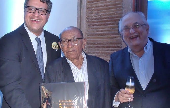 Jaime Asfora, José dos Santos e Leonardo Silva no lançamento do seu livro de arte pernambucana (Foto: Zilton Antunes)