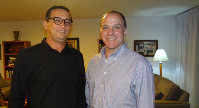 O jornalista Laurindo Ferreira e o cônsul Richard Reiter dos Estados Unidos (Foto: Fernando Machado)