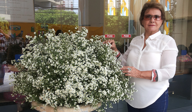 A advogada Alizete Maynard diante de um arranjo de gypsophilas (Foto: Cortesia)