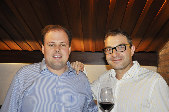 Maurício Dias e o enólogo Vincenzo Protti em evento da vinícola italiana Masi na Casa dos Frios (Foto: Divulgação)