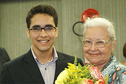 Jefferson Lopez e a diva do frevo Zezita Barbosa, na homenagem a Capiba na Casa do Estudante (Foto: CEP)