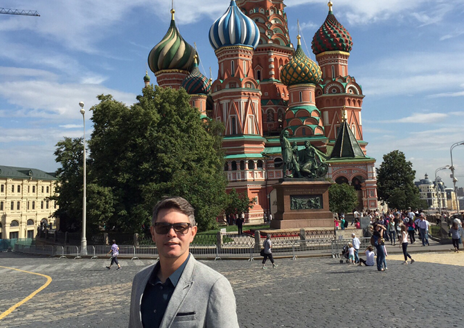 Emerson Pires diante da Catedral de São Basílio, na Russia (Foto: Face de Emerson)