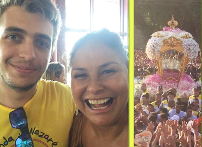 Pedro Mazzarolo e a Fafá de Belém curtindo o Círio de Nazaré, em Belém do Pará (Foto: Face)