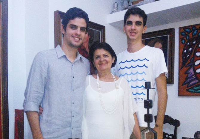 Lourdinha Oliveira entre os filhos Oscar e Arthur Nóbrega (Foto: Face)