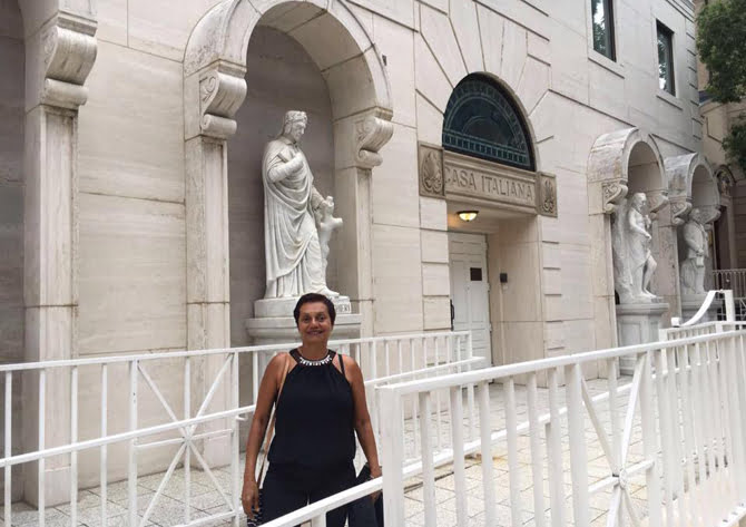 Regina Xavier diante da Casa Italiana em Washington D.C. (Foto: Face)
