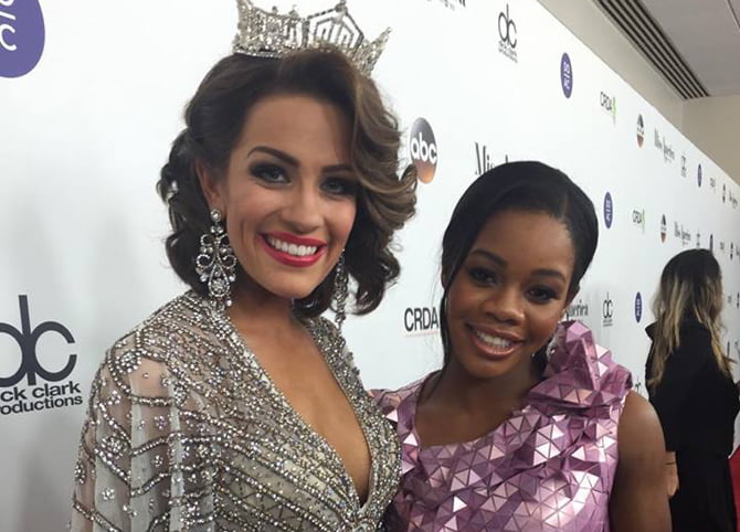 Miss América de 2016, Betty Contrell e Gabby Douglas no MIss América de 2016 (Foto: Divulgação)