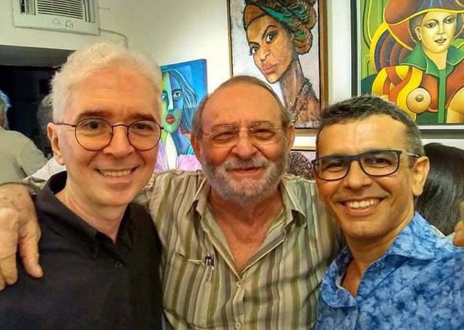 Helio Silvestre, Marcelo Marroquim e Abrão Figueiredo no vernissage do Moma Galeria de Arte (Foto: Silvano Silva)