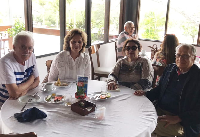 No café da manhã, no Portal Fazenda de Gravatá, Admaldo e Conceição Assis, Jane e Roberto Magalhães (Foto: Face)