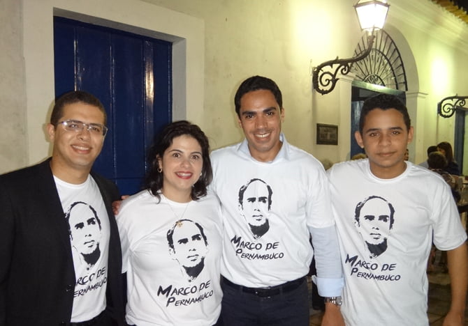 A deputada Priscila Krause entre Diego Lagedo, Darlan Braz e Rafael Barbosa no lançamento do livro de Marco Maciel (Foto: Fernando Machado)