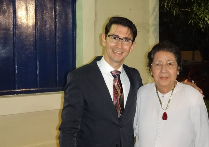 O cerimonialista Kiryl Muniz e a presidente da APL, Margarida Cantarelli, no lançamento do livro de Marco Maciel (Foto: Fernando Machado)
