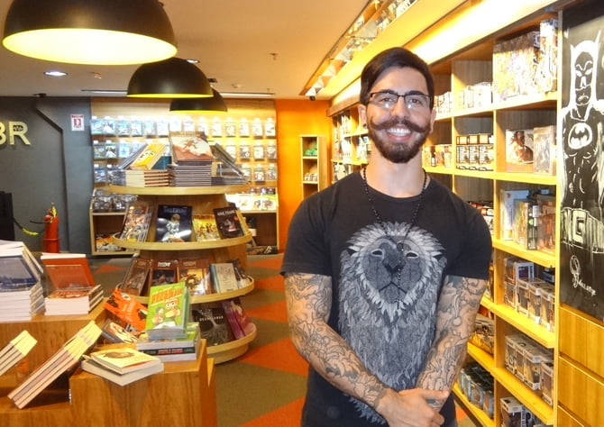 O estiloso Leonardo Melo passeava pela Livraria Cultura à moda de bigodes do seculo passado (Foto: Fernando Machado)