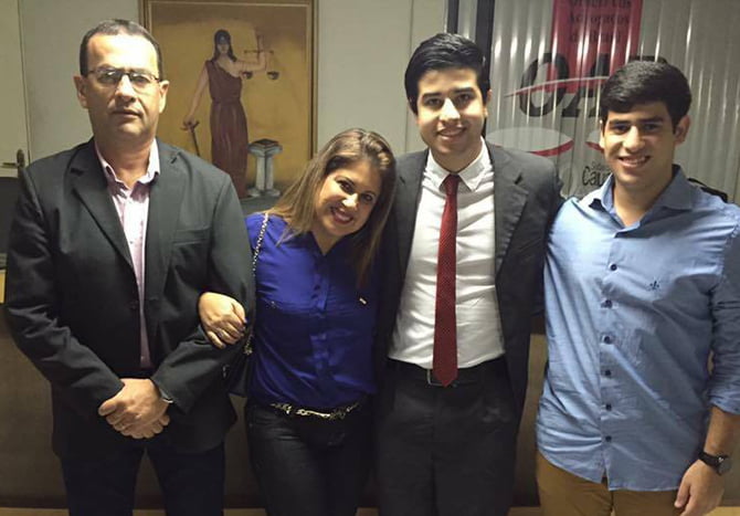 Otavio Vareda ao lado da esposa Karla e dos filhos Otavio e Thyago pelos salões de Caruaru (Foto: Face)
