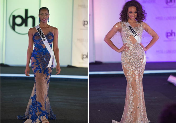 Yasmine Cooke e Alicia Aylies desfilando no Miss Universo de 2017 (Fotos: Concurso)