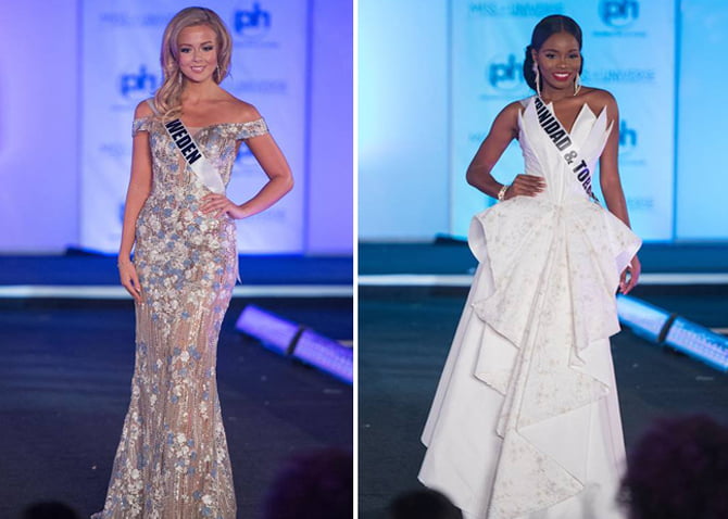 Frida Fornander da Suécia e Yvinne Clarke de Trinidad @Tobago desfilando no Miss Universo (Fotos: Concurso)