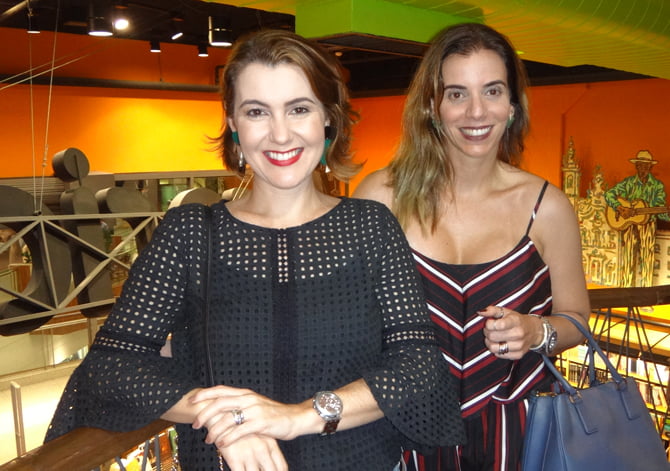 Inês Calado e Mirella Martins no lançamento do livro As Armadilhas da Moda, de Arlindo Grund (Foto: Fernando Machado)