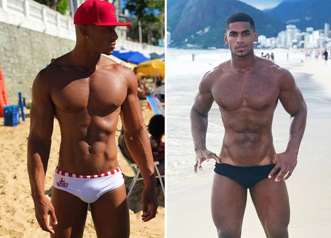 Vocês preferem este deus de ébano baiano, Robert Oliveira, de sunga branca ou preta? (Fotos: Face)