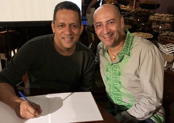 O chef Claudemir Barros autografando o seu livro para o chef Cesar Santos (Foto: Instagram)